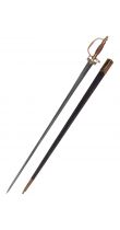 Cette réplique de l'épée de cour possède une lame en acier à ressort EN45 de section triangulaire, qui n'est pas aiguisée. L'élément de parade et le garde-main incurvé sont en laiton, avec une poignée en bois.Le fourreau est en bois recouvert de cuir, avec des ferrures en laiton et un crochet pour attacher le fourreau à la ceinture.Caractéristiques spéciales :- Epée de cour...