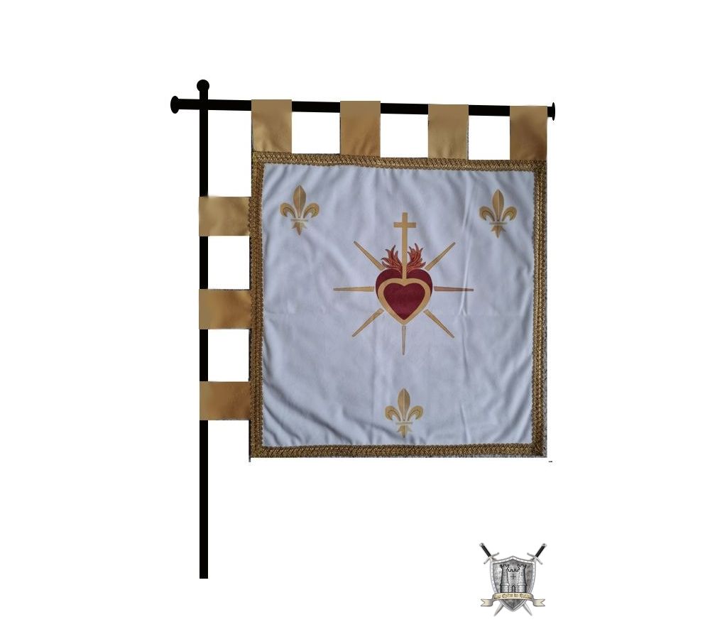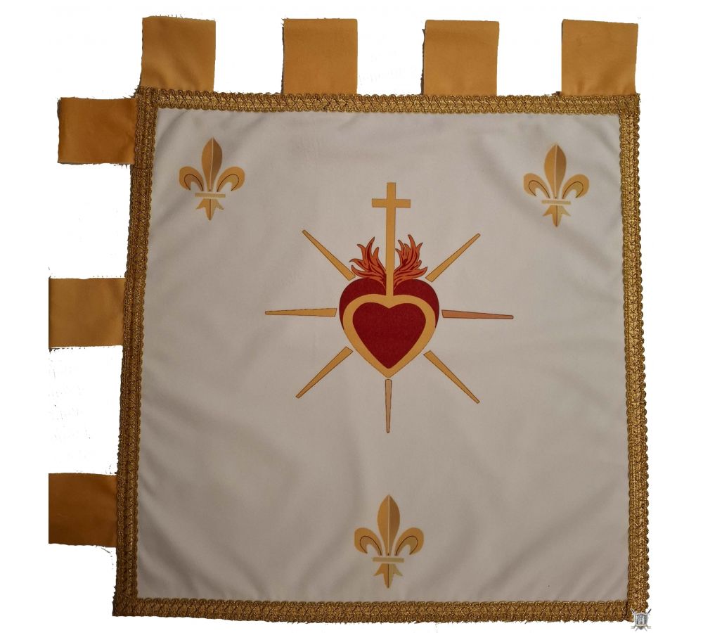 Bannière double face en tissu velours épai résistant avec passementerie en fil d'or fin autour