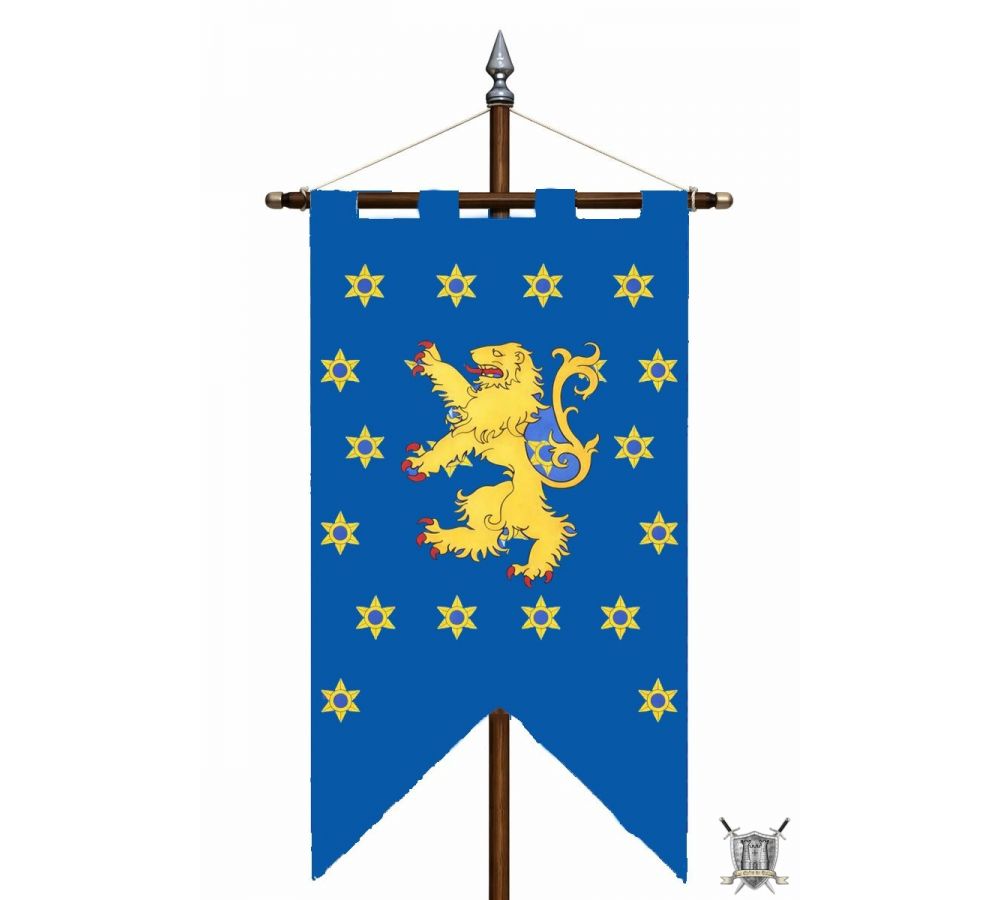 Bannière en tissu velours épai résistant, textile certifié EN71-3 une face blason au centre avec passants et passementerie blanche ou bleue