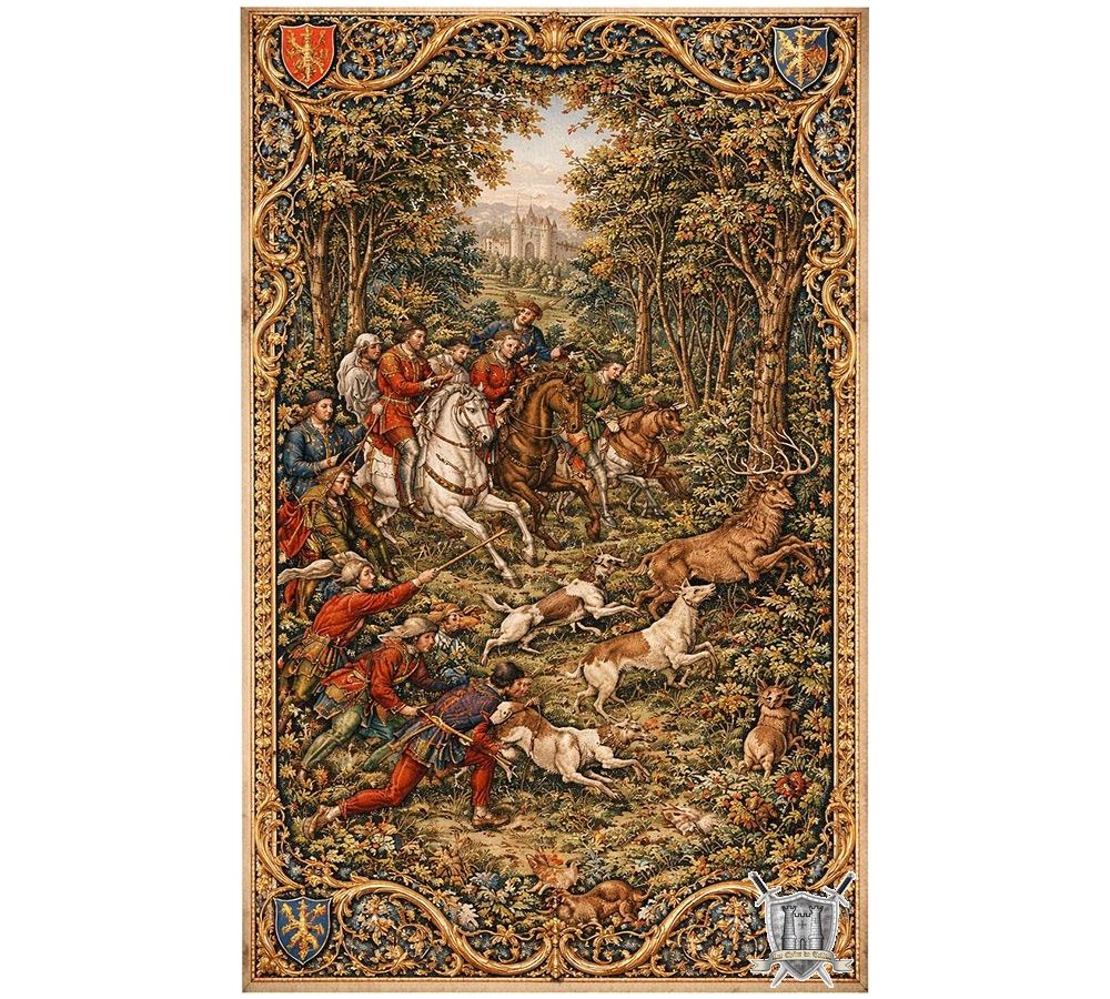 Tapisserie scène de chasse en tissu velours résistant de 130x82 cm
