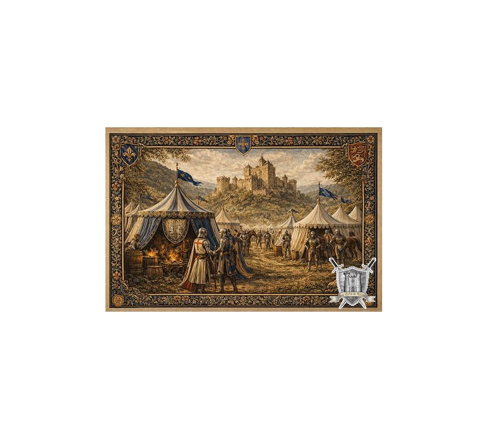 Tapisserie 100x66cm d'une scène de champ de bataille en tissu velours épai résistant