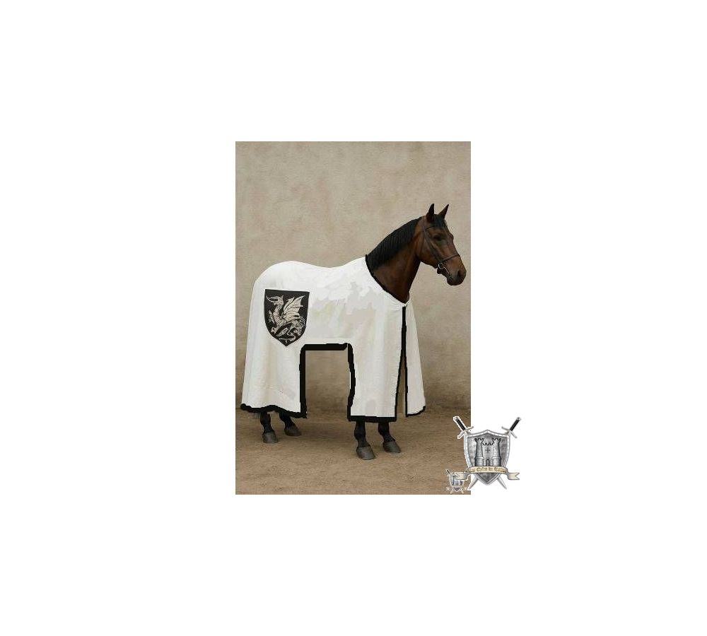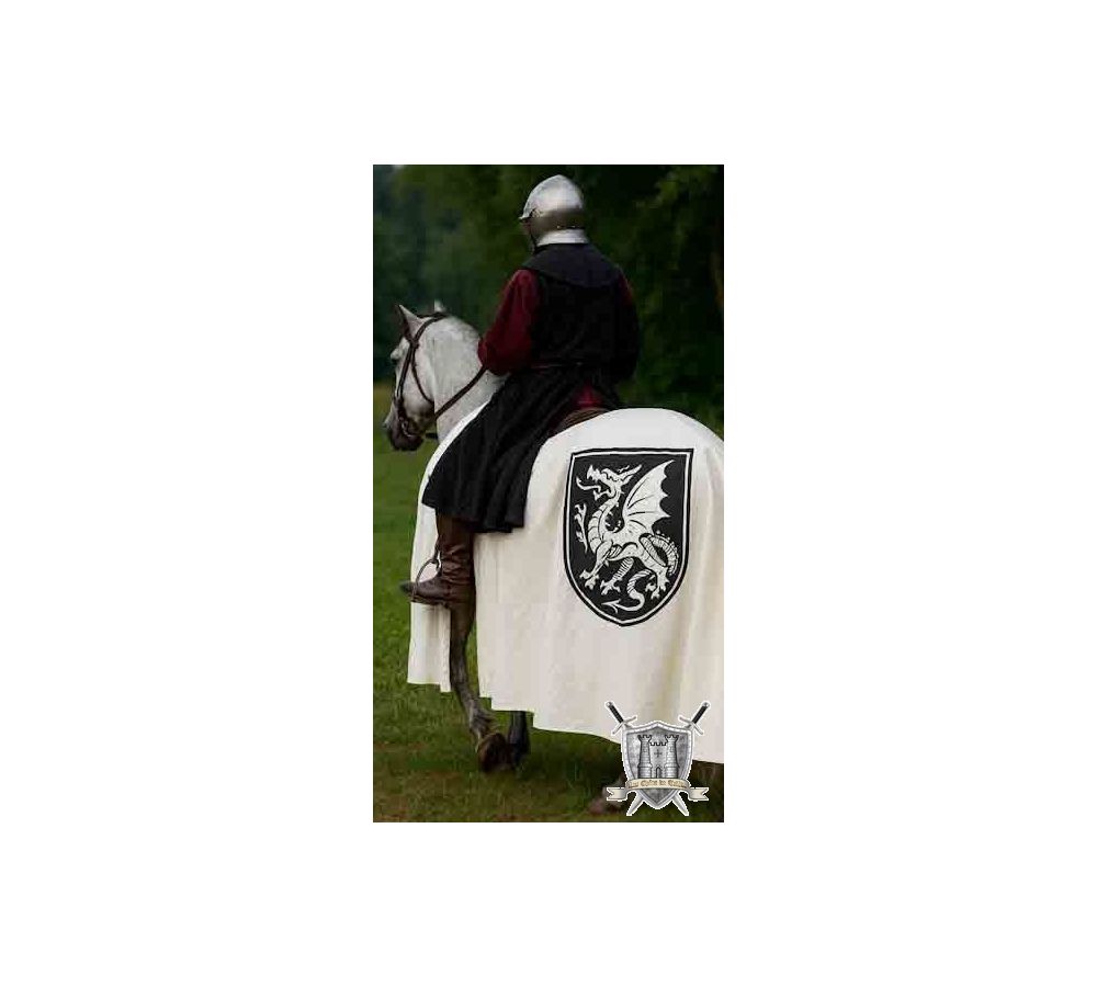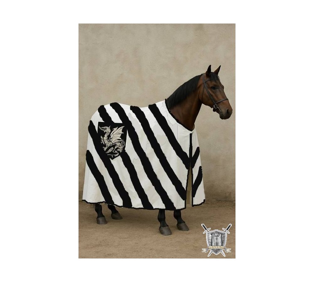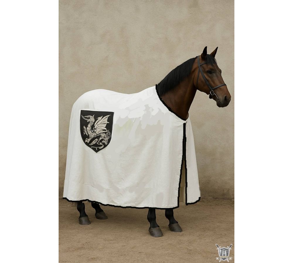 Caparaçon en tissu de velours épai et résistant blanc avec dragon noir.