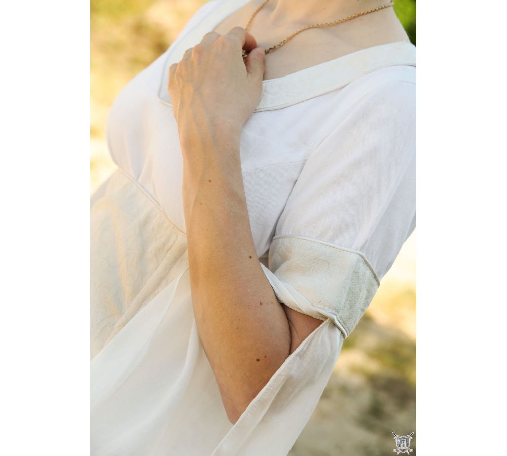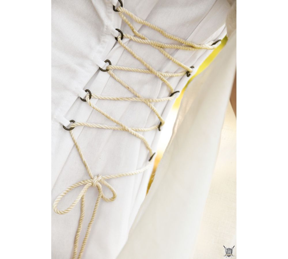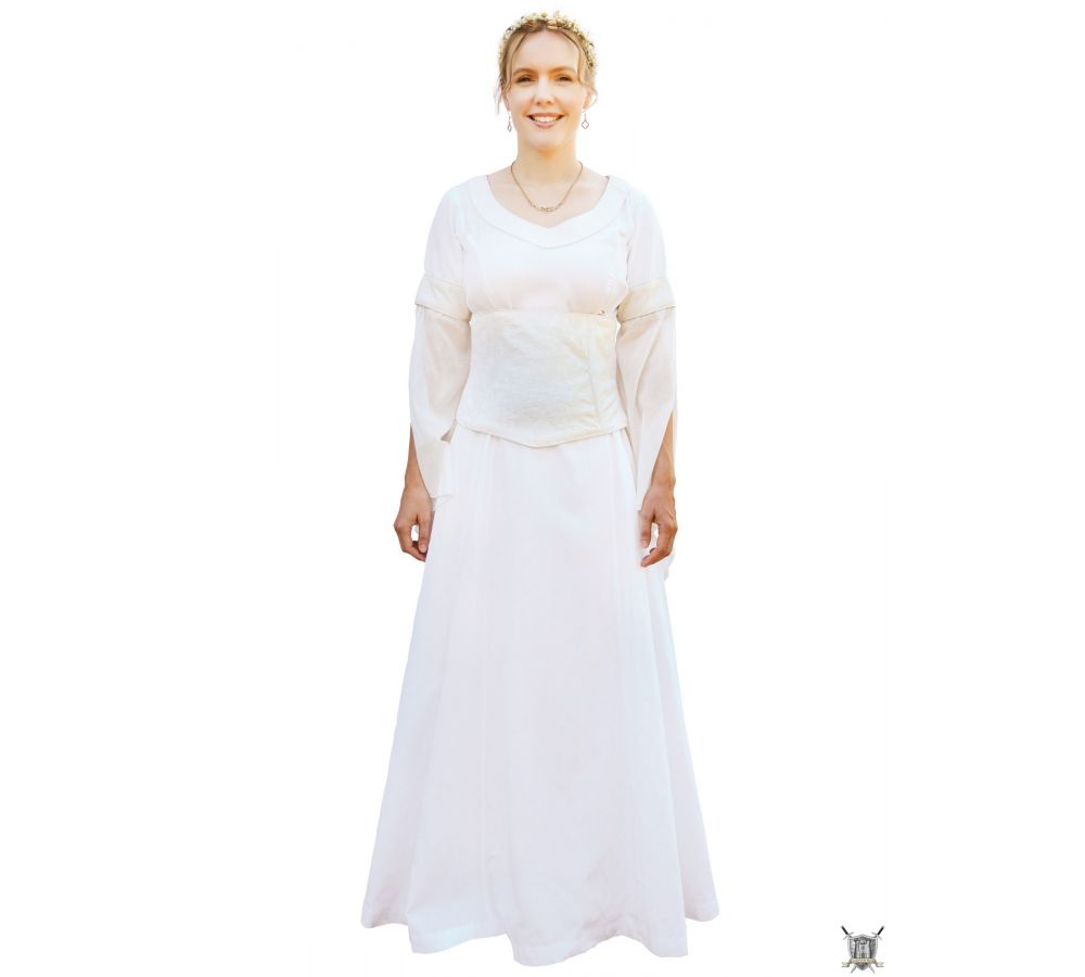 Cette robe de mariée noble se compose de deux parties séparées - une robe évasée avec des lacets latéraux et un corsage inclus dans la livraison. Elle peut être portée avec ou sans corset. Les laçages assurent une belle coupe et les manches fendues