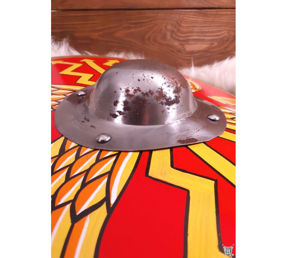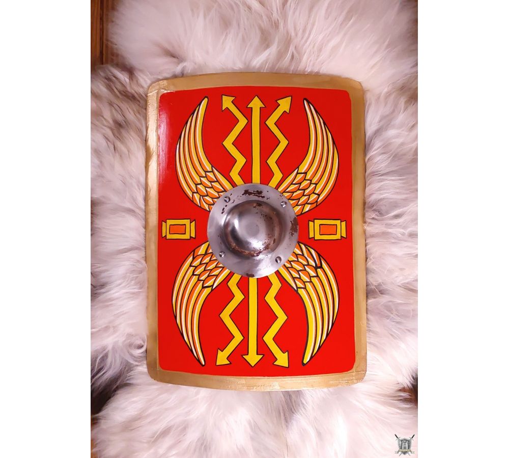 réplique réduite d’un ancien bouclier (scutums) des Ier/IIe siècles ap. J.-C., tels qu’ils étaient utilisés par les légionnaires romains de l’époque impériale. Les vrais soldats romains ne quittaient jamais le camp sans leurs boucliers. Le bouclier appartenait à l’équipement de chaque légionnaire, ainsi que l’armure (lorica), le casque (galea) et l’épée courte (gladius).