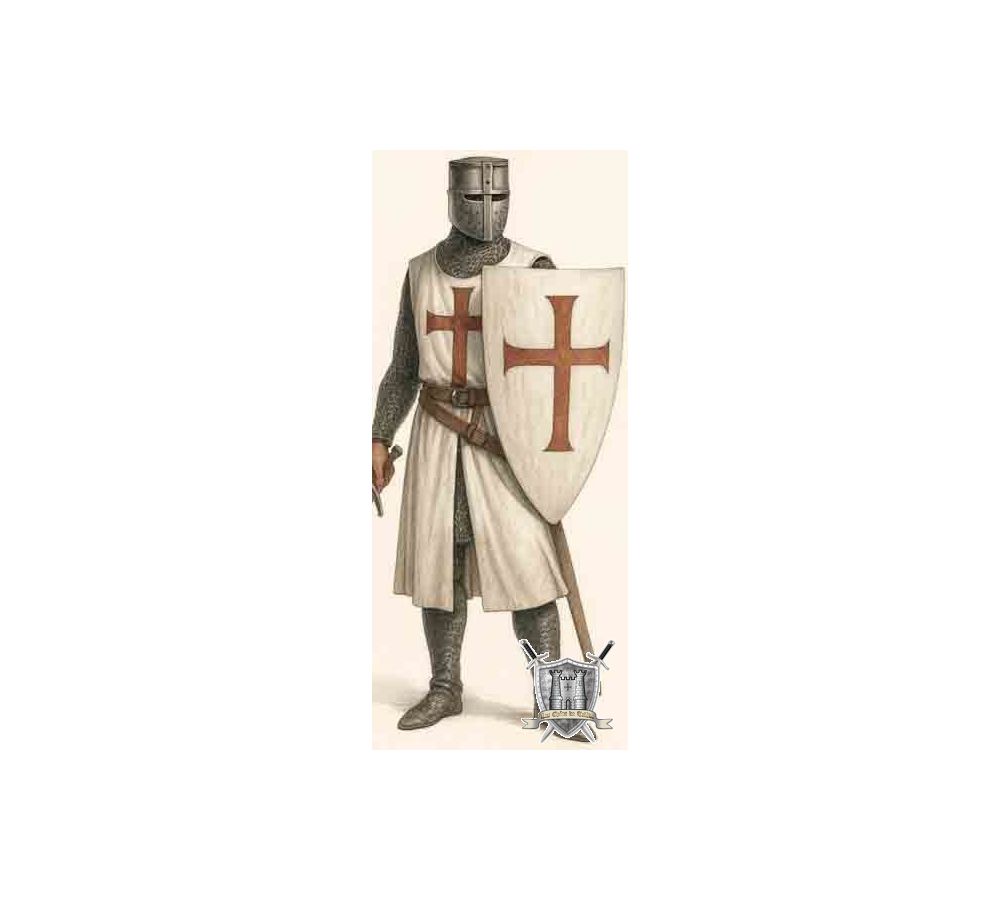 Ensemble chevalier templier composé d'une tunique en tissu velours résistant avec la croix imprimée et un bouclier en bois entoilé