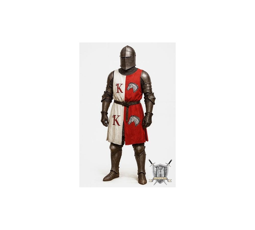 Tabard sur mesure en tissu velours épai fendu devant derrière sur les côtés en bicolor rouge et blanc avec les logos correspondants