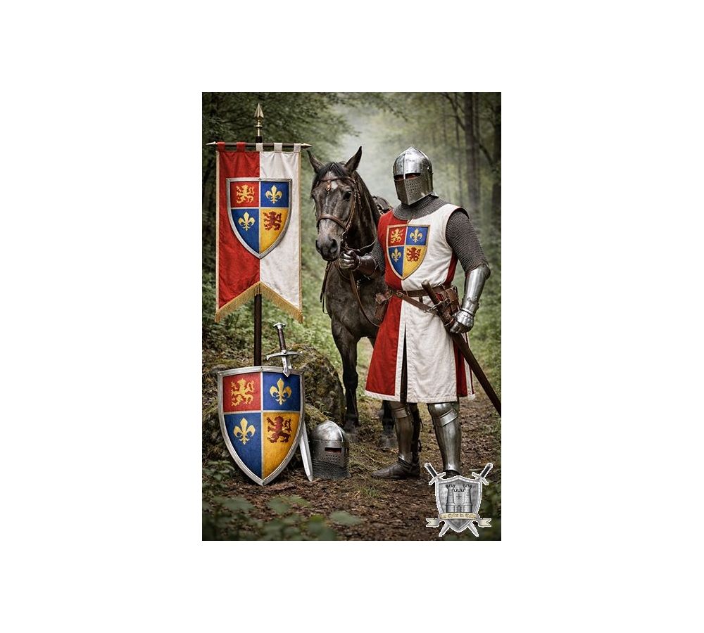 Un ensemble chevalier sur mesure selon vos couleurs votre blason. Vous choisissez tout nous vous guidons, vous fournissez vos tailles et nous vous livrons.